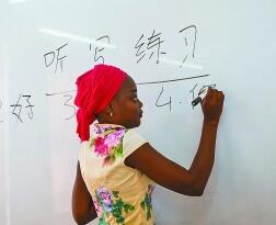 7月18日,在塞内加尔达喀尔大学孔子学院,学生听写汉字。新华社发