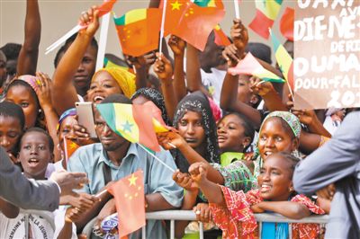 习近平主席的访问受到塞内加尔民众热烈欢迎。图为当地民众身着节日盛装,挥舞塞中两国国旗,载歌载舞,热情欢呼,欢迎习近平主席访问。 本报记者 胡泽曦摄