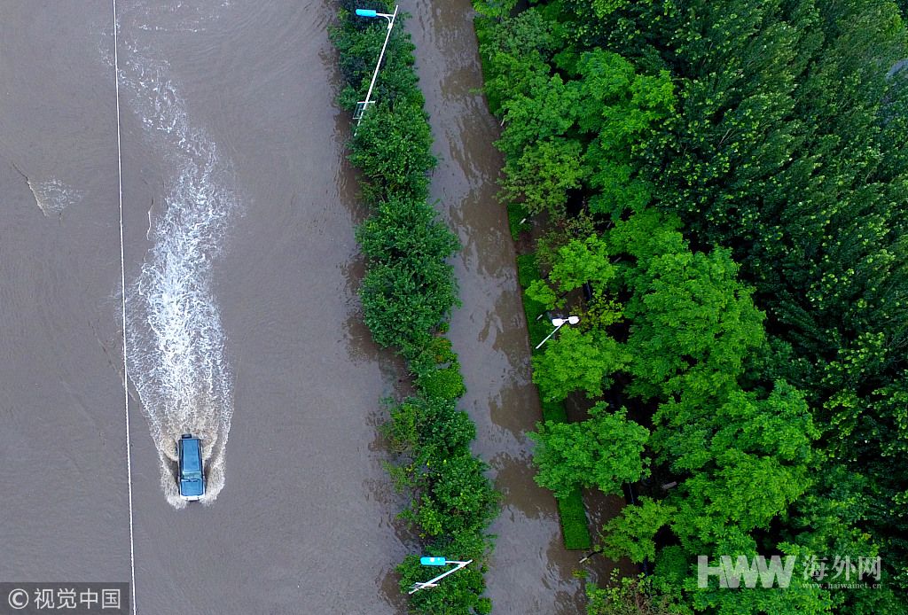 2018年6月11日,沈阳迎来暴雨天气,雨后道路积水,行车如舟,不少车辆在积水中抛锚。图片作者:沈阳/视觉中国