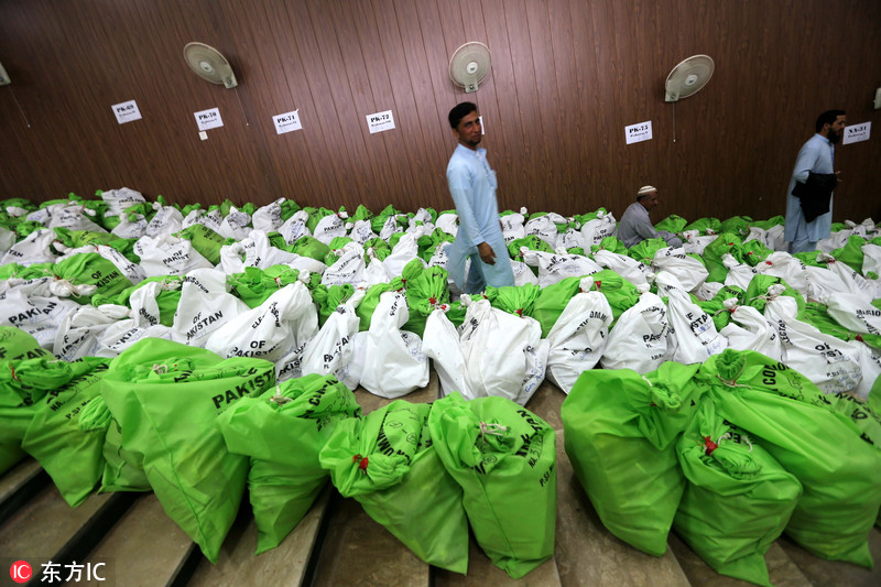 巴基斯坦大选在即 士兵荷枪护送大选物品