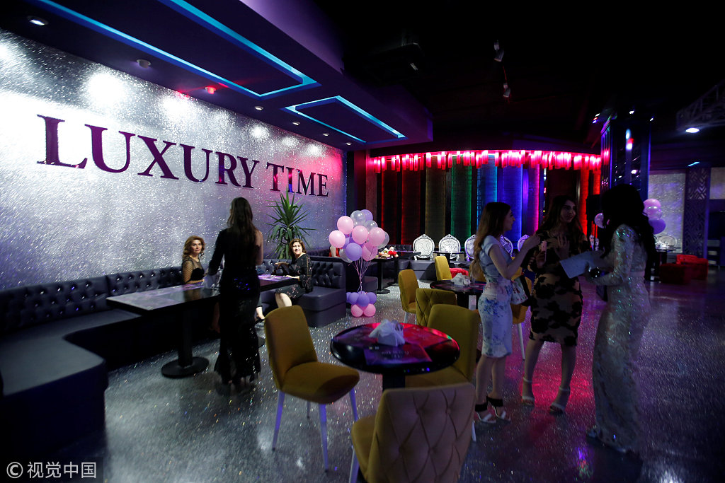 当地时间2018年7月17日,伊拉克埃尔比勒,女性顾客在埃尔比勒首家女性专属餐厅Luxury Time用餐。