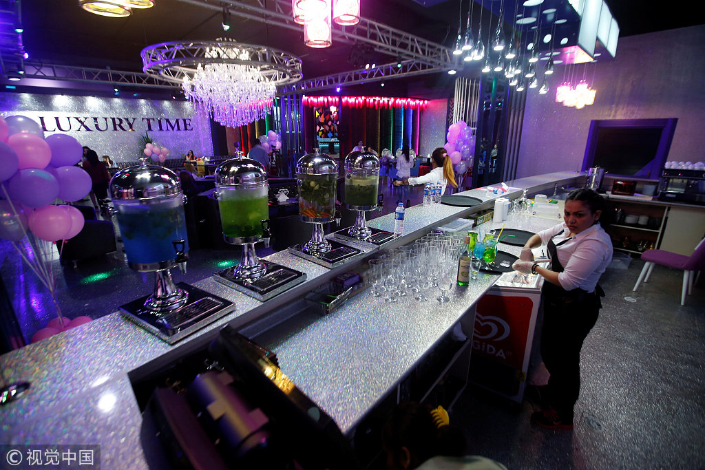 当地时间2018年7月17日,伊拉克埃尔比勒,女性顾客在埃尔比勒首家女性专属餐厅Luxury Time用餐。