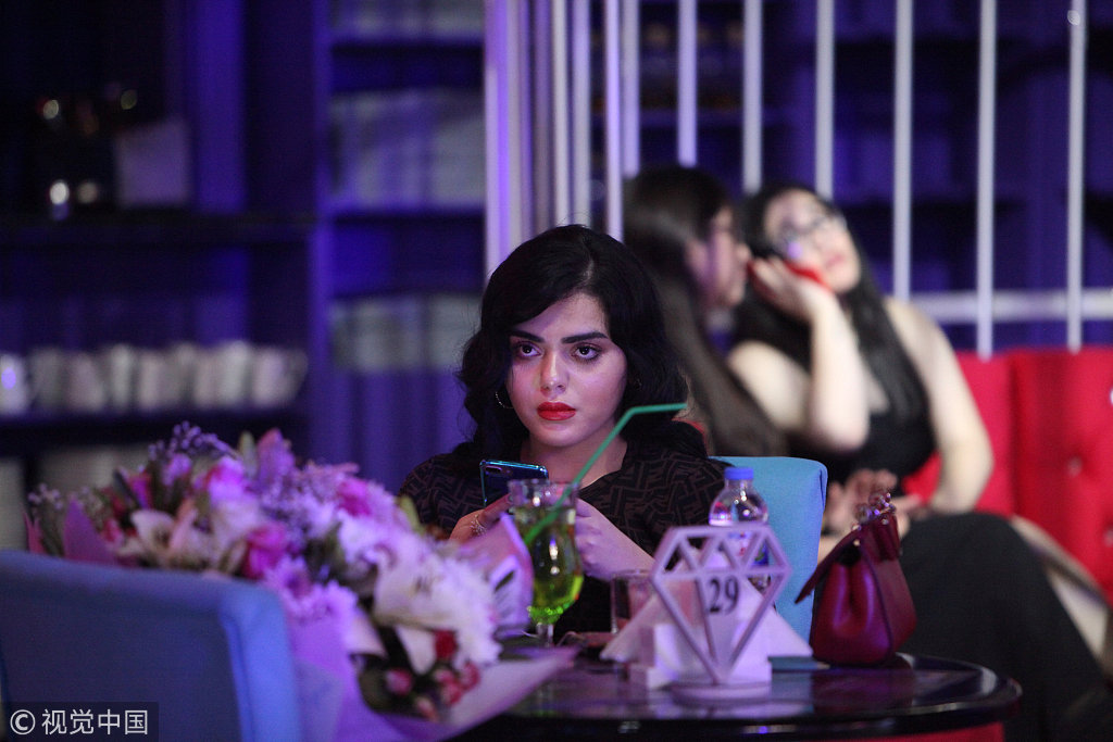 当地时间2018年7月17日,伊拉克埃尔比勒,女性顾客在埃尔比勒首家女性专属餐厅Luxury Time用餐。