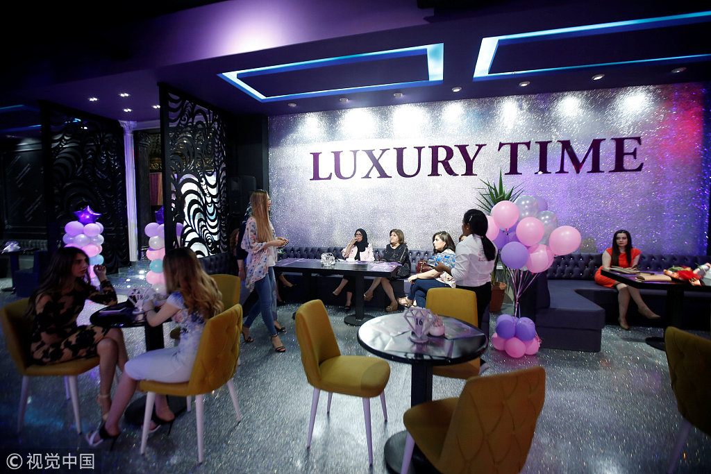 当地时间2018年7月17日,伊拉克埃尔比勒,女性顾客在埃尔比勒首家女性专属餐厅Luxury Time用餐。