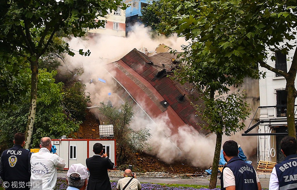 当地时间2018年7月24日,土耳其伊斯坦布尔,施工导致一处公寓所在山坡发生滑坡,公寓楼体部分悬空,随后发生坍塌。