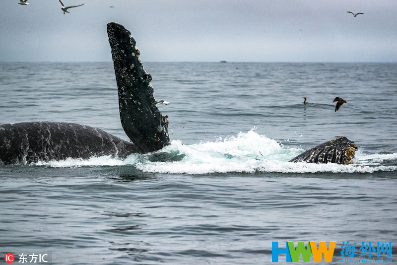 惊魂一幕!美国巨型座头鲸悄然出水险顶翻皮艇