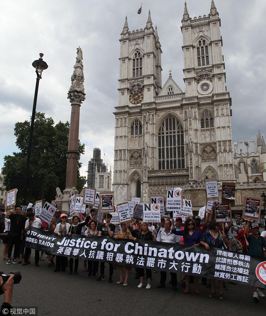 英国华人罢市游行抗议粗暴执法