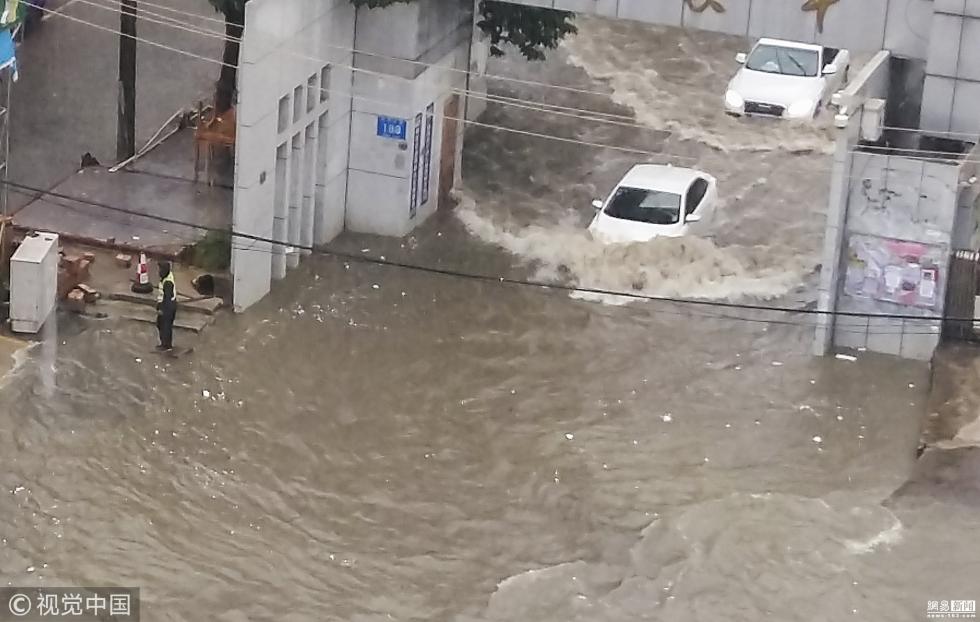 广西南宁遭遇暴雨侵袭 开启汽车"游泳"模式