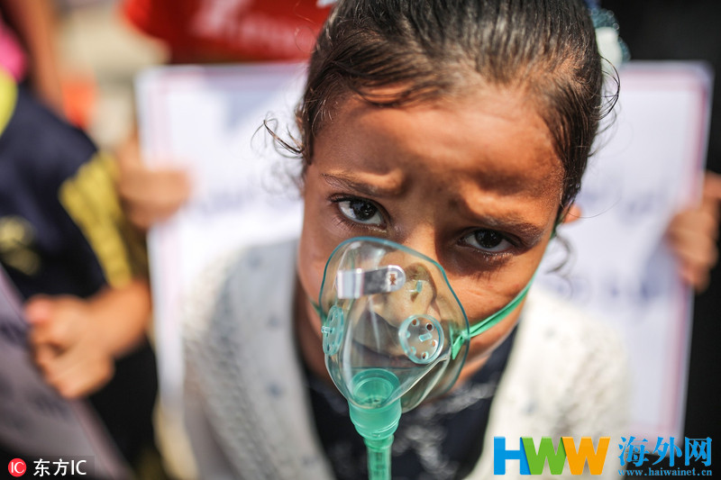 当地时间2018年7月24日,加沙城,加沙儿童参加集会,抗议以色列针对巴勒斯坦的封锁。图片来源:东方IC