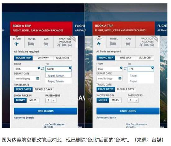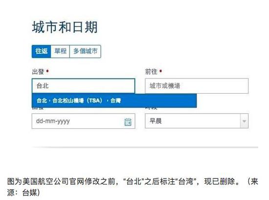 原标题:美航企官网“压哨”修改涉台标注 “打折”部分申请延期两周整改