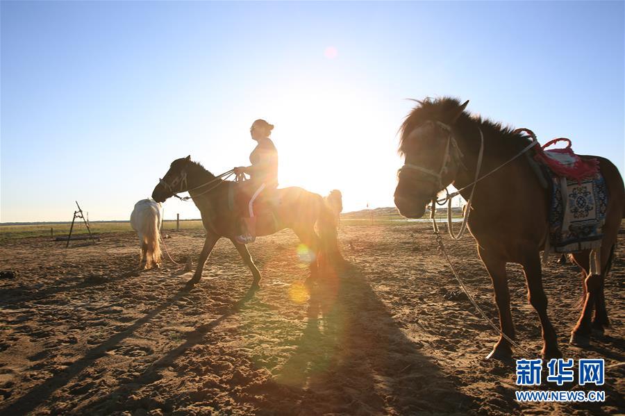 7月25日,一名女骑手在库布其沙漠七星湖景区骑马。 随着暑期旅游旺季的来临,位于内蒙古库布其沙漠的响沙湾、七星湖等景区迎来了来自全国各地的游客。人们在沙漠中体验索道、骑行、冲浪车等旅游项目,领略大漠壮美景观。 新华社记者 卢烨 摄