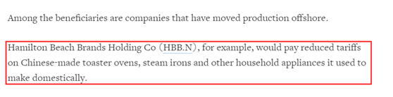 而且,部分该法案涉及的产品也不都是简单的零部件或基础化学品,还有不少是中国已经制作好的成品,比如烤面包机、电熨斗等家用产品。