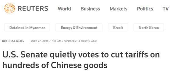 但奇怪的是,虽然一些美国媒体也简单报道了这个法案继数月前全票通过美国众议院、昨天又在简单修改后得到美国参议院一致通过的事情,这些媒体却并没有深挖这个法案中暗藏的一个与中美贸易战有关的“玄机”。