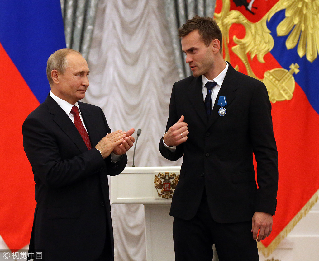 俄罗斯总统普京接见足球国家队并为其颁奖