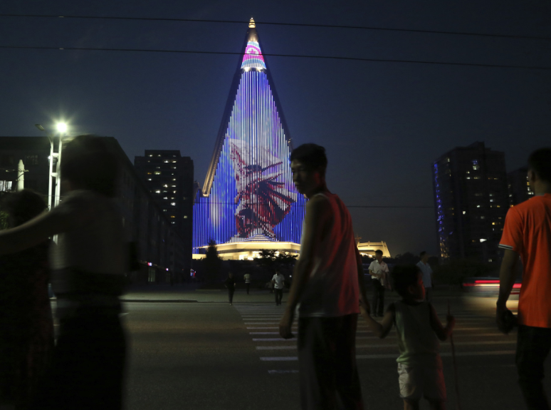 朝鲜柳京饭店举行灯光秀
