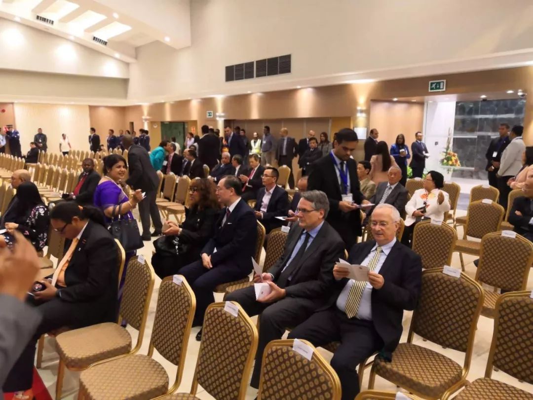 △机场贵宾室内,多国驻毛里求斯大使受邀前来观礼(央视记者关舟拍摄)
