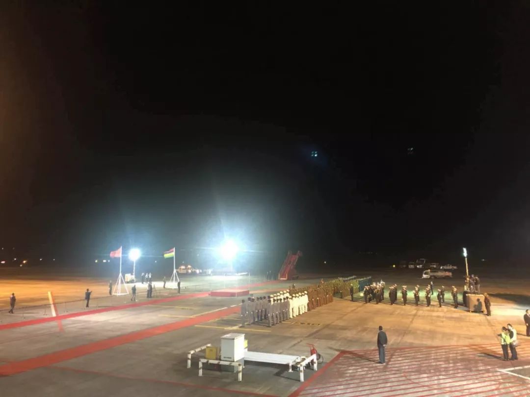 除了演奏中国歌曲《我的中国心》,当晚的欢迎仪式上还有一些细节体现了毛里求斯对中国贵宾的隆重礼遇。习近平主席虽然是深夜到访,毛里求斯总理贾格纳特携全体内阁成员到机场接机。总理夫人科比塔还亲自向习主席夫人彭丽媛献上了鲜花。