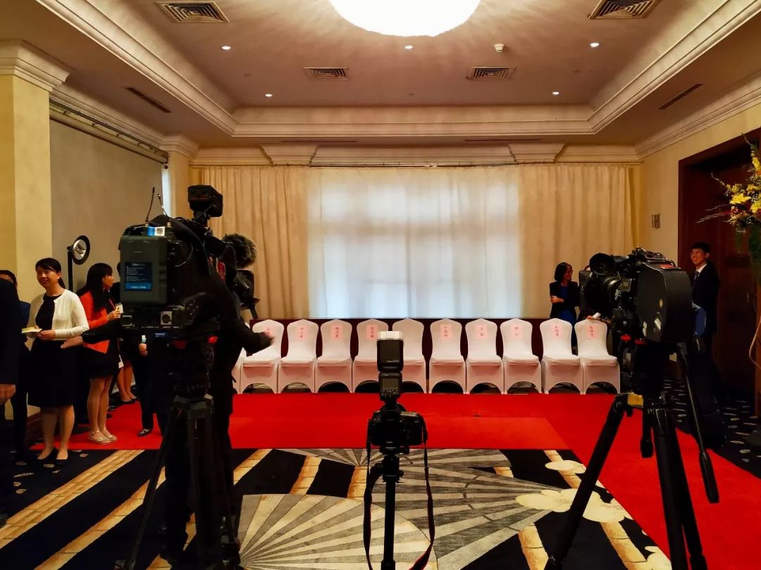 △大范围会谈前,工作人员布置检查会场(央视记者马亚阳拍摄)