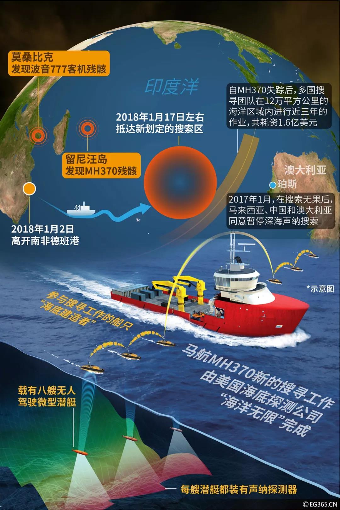 今年1月,马来西亚政府与一家名为“海洋无限”美国水下探测公司从1月23日开始搜寻,根据5月15日发布的最新报告,该公司使用的搜寻船已经完成对8.6万平方公里海域的搜寻,但尚未有任何发现,而此次搜寻工作已经在5月29日正式结束。