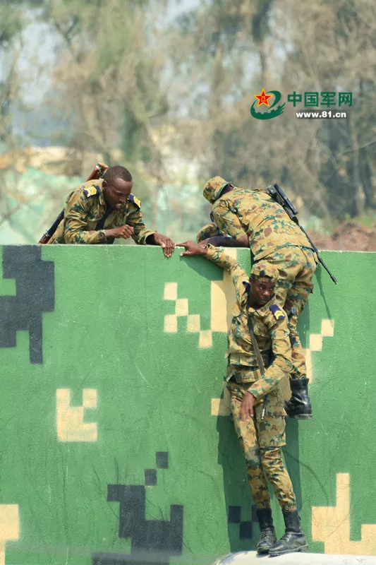 苏丹参赛队员通过建筑障碍物。闫培 摄