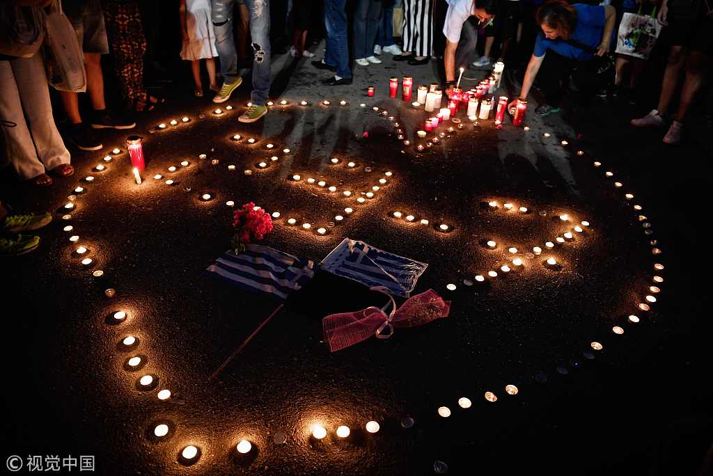 希腊森林火灾已致91人遇难 民众议会前纪念遇难者