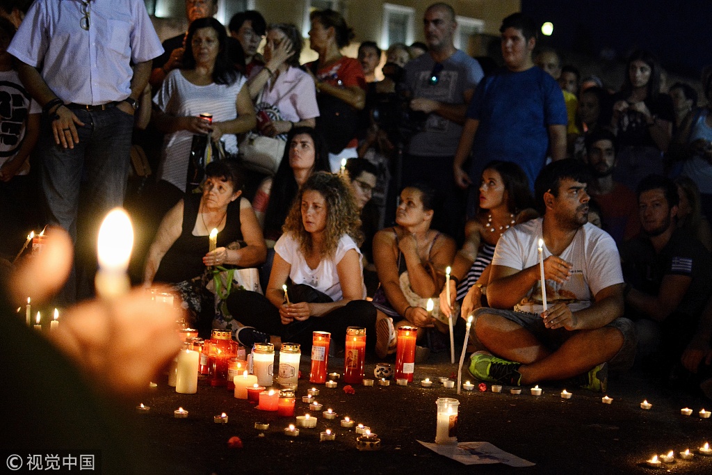 当地时间2018年7月30日,希腊雅典,民众在希腊议会外点燃蜡烛,纪念森林大火的遇难者。希腊雅典东部沿海地区发生了近一个多世纪以来欧洲最为致命的一场森林火灾,据希腊消防部门的最新数据显示,此次的山火已经导致91人死亡,另有25人失踪。