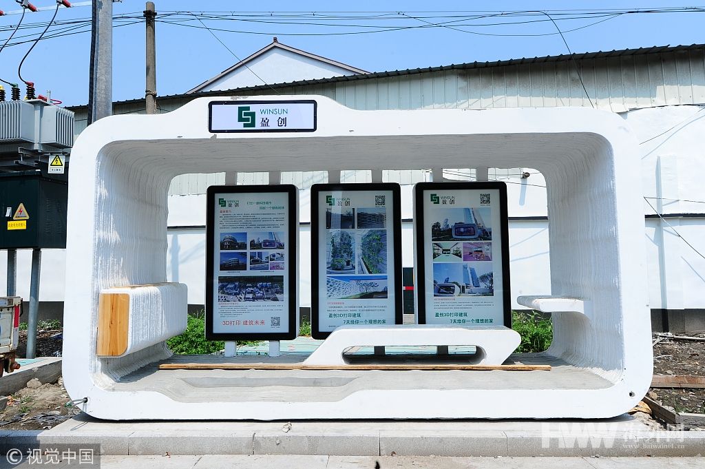 2018年7月31日,两座简洁大方,设计造型充满现代科技气息的3D打印公交站台亮相浙江省湖州市南浔区横街村。