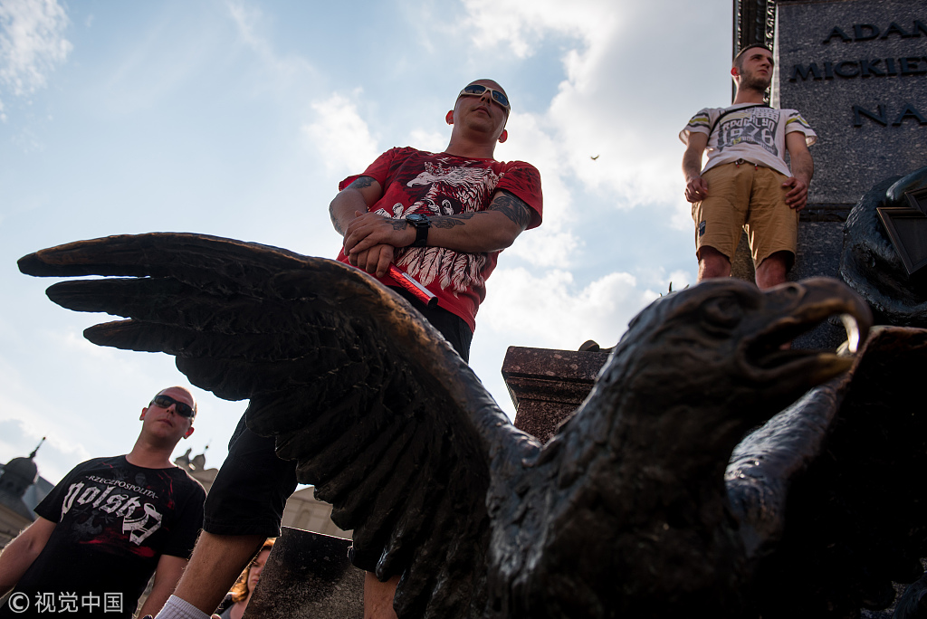 波兰举行活动纪念华沙起义74周年 民众广场集会燃放冷焰火