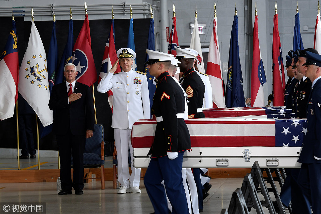 55具美军遗骸抵达夏威夷 副总统彭斯到场迎接
