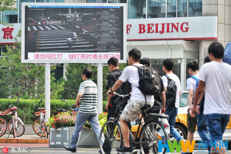 北京现闯红灯曝光屏 不文明举动被"现场直播"