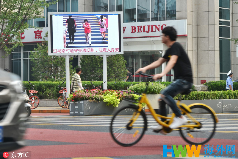 北京现闯红灯曝光屏 不文明举动被"现场直播"