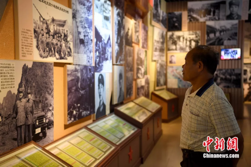 钮本同介绍龙州烈士陵园陈列馆。俞靖 摄