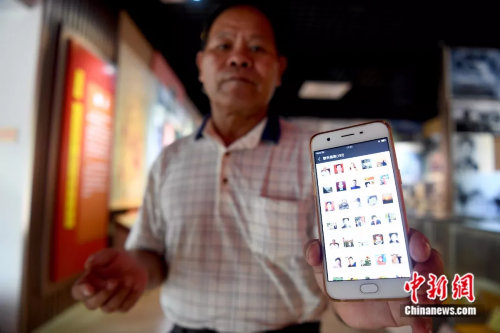 钮本同展示其建的微信群,方便老兵、烈士亲属交流。俞靖 摄