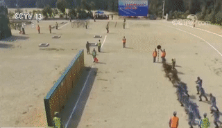 障碍赛赛程总长1200米,每名队员需要按规定路线完成19个障碍物的越障与冲刺等内容。5个国家参赛队共派出13个陆战班分7组同台竞技,根据各陆战班完成比赛的总时间判定名次。