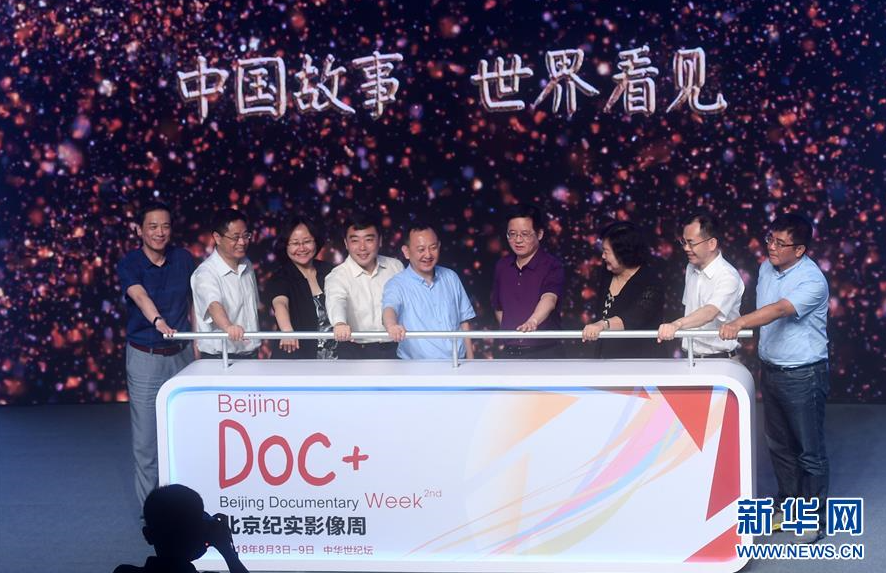 8月3日,嘉宾在开幕式上共同启动第二届北京纪实影像周。当日,第二届北京纪实影像周在北京中华世纪坛开幕。本届影像周以纪念改革开放40周年为主题,以40年来的纪实影像来展现中国人创造美好生活的不懈奋斗。(新华社记者金良快摄)