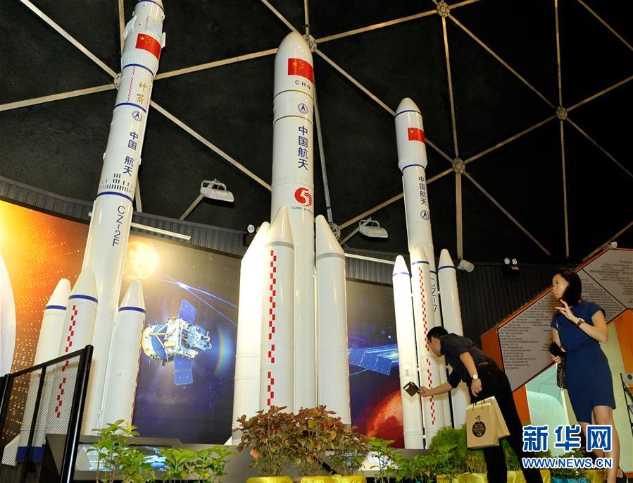 8月4日,人们在马来西亚北部槟城州的圆顶科学馆观看中国捐赠的航天器模型。 由中国科学技术馆捐赠的6件航天器模型4日在马来西亚北部槟城州的圆顶科学馆正式与观众见面。这6件展品分别是按照10:1比例打造的4支长征系列运载火箭模型,以及按1:1比例复制的嫦娥三号月球探测器和“玉兔号”月球车模型。 新华社发