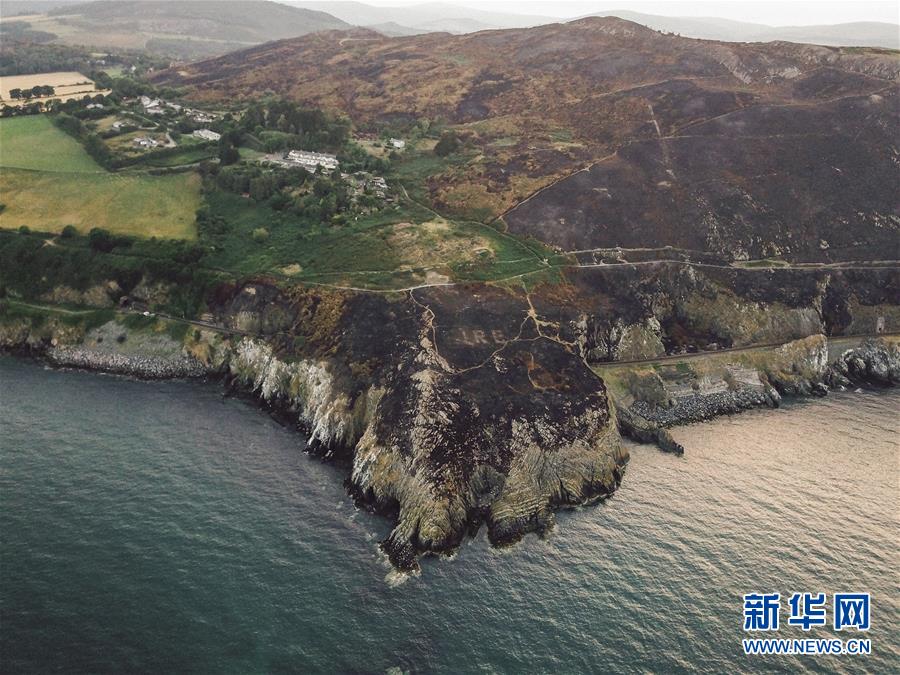 这是8月5日在爱尔兰首都都柏林以南约40公里的布雷小镇拍摄的一处二战遗迹(航拍照片)。爱尔兰警方4日宣布,当天从空中巡视东海岸一处因高温而引发山火的区域时,意外发现了一个二战时期的历史遗迹。这是首次在东海岸发现这类遗迹。