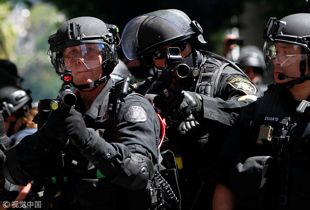 美国警方闪光弹驱逐极右翼团体集会