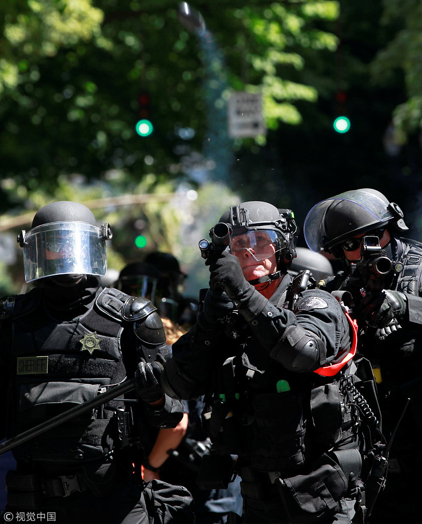 美国警方闪光弹驱逐极右翼团体集会