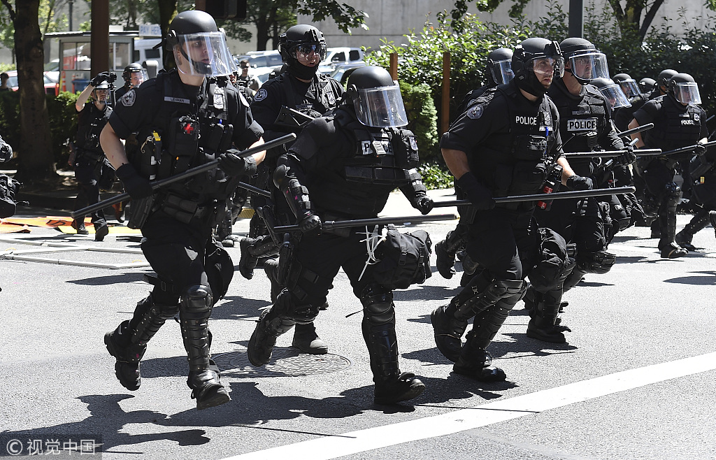当地时间2018年8月4日,美国波特兰市,美国波特兰市两个极右团体举行集会,支持极右人士竞选国会议员。