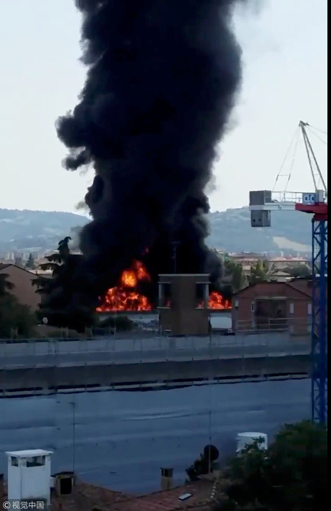 当地时间2018年8月6日,意大利博洛尼亚,一辆载有易燃物质的货车与其他车辆的交通事故导致。爆炸时声响巨大,浓烟冲天,已造成3人死亡,超过60人受伤。