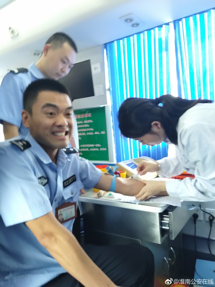 8月7日报道,近日,由淮南公安在线发布的一组警察献血时龇牙咧嘴,痛苦的脸上写满“疼skr人”的照片走红网络。