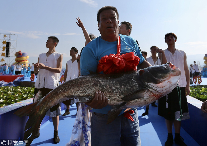 四川开渔获66斤“鱼王” 6000斤鱼免费吃