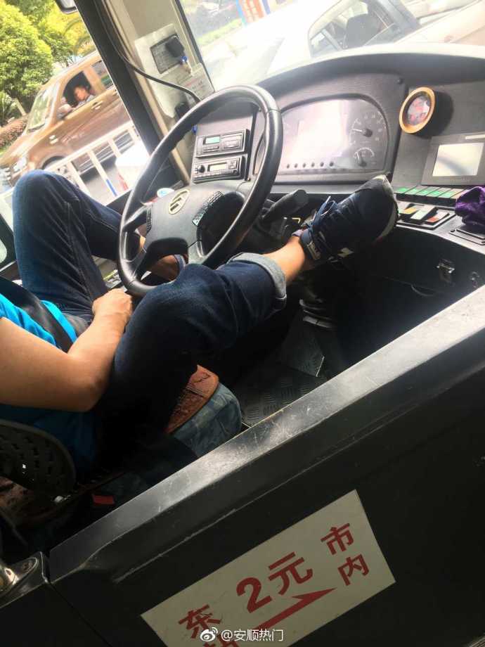8月7日报道,8月5日,有网友图文并茂地发微博称,贵州安顺一名9路公交司机用脚开车。随后,该微博引发了网友热议。目前,这名公交司机已被安顺市公交总公司处罚。不过,当事司机表示,这也事出有因。从网友上传到网络的图片显示,这名司机左脚和右脚都搭在了方向盘附近。据网友称,该司机一只脚搭在了门上,一只脚则踩油门和刹车,遇到红绿灯时,双脚则干脆搭在方向盘前方。文字来源:澎湃新闻