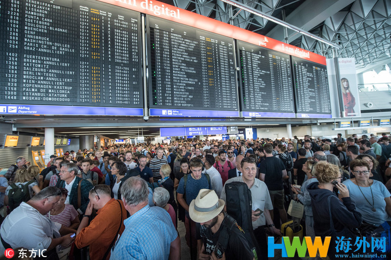 当地时间2018年8月7日,德国法兰克福,法兰克福机场发出安全警报。据报道,因至少有1名不明身份的人士未经安检即进入机场安全区,德国警方对法兰克福机场1号航站楼内的人员进行了紧急疏散。