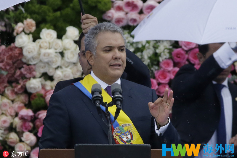 杜克宣誓就任哥伦比亚新一届总统 典礼冒雨举行