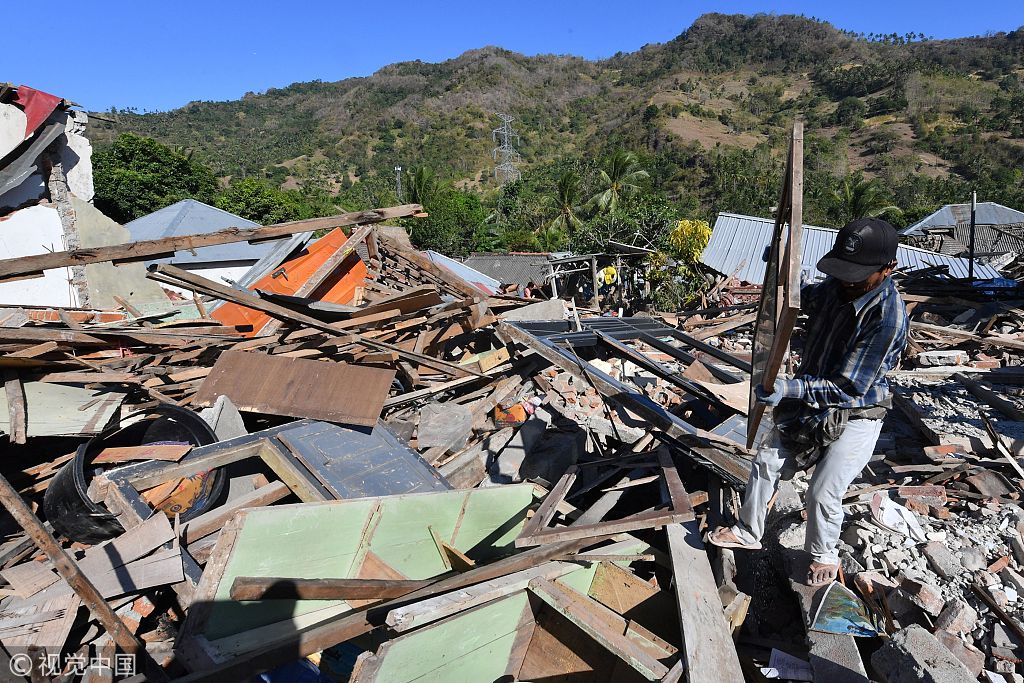印尼7.0级地震致龙目岛成废墟 救援队继续搜寻幸存者