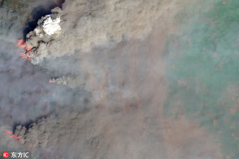 美国加州山火肆虐太空可见 14000名消防员灭火