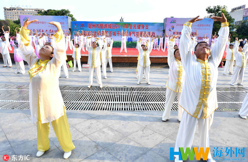 全民健身日 安徽广场市民展演五禽戏
