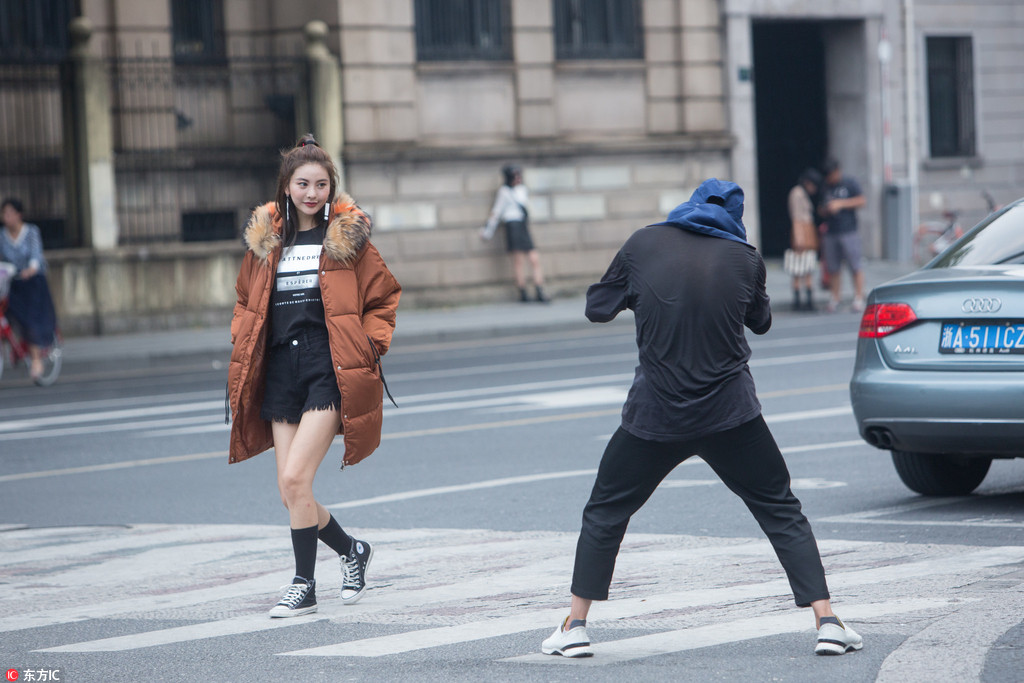 看着都热!40℃烈日下网店模特拍冬装样衣